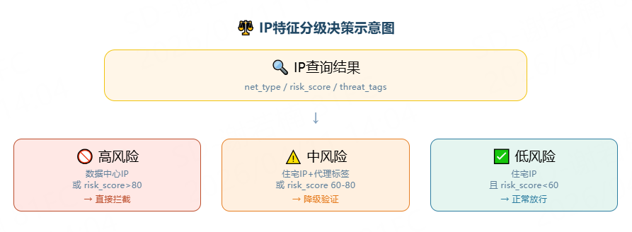 风险评分(0-100) | 量化IP风险程度,避免非黑即白 |