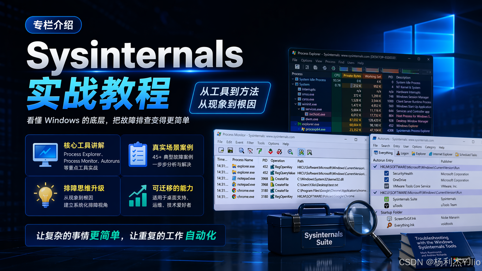 我这个 《Sysinternals实战教程》 专栏,核心不是泛泛介绍几个工具名字,而是想带你建立一种更底层的 Windows 排障视角: