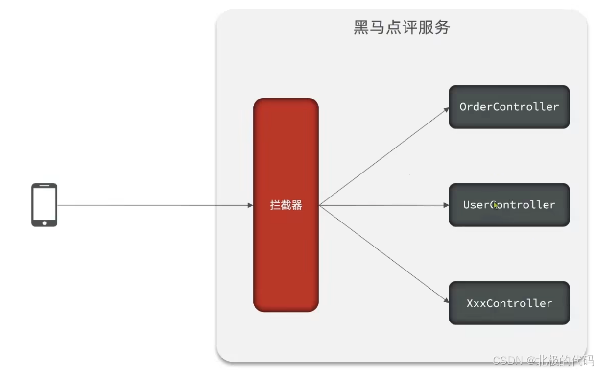 拦截器在请求到达 Controller 之前,先判断用户是否已登录,未登录则直接拦截返回,不让访问需要登录的接口。