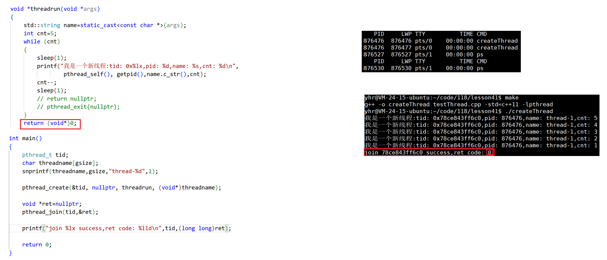 std::cout << "join success: " << tid << std::endl;