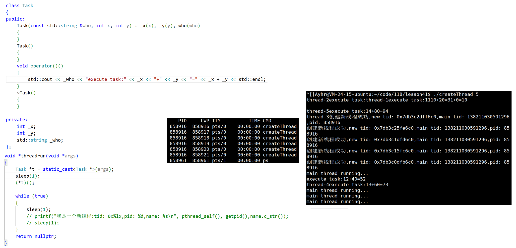 std::cout << "create thread " << threadname << " success, tid: " << tid << std::endl;