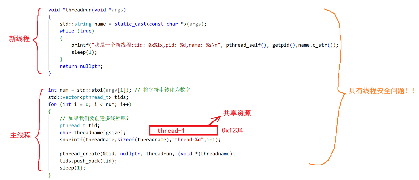 pthread_create(&tid,nullptr,threadrun,(void*)"thread-1");
