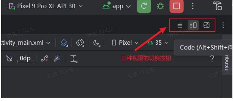 Code模式:直接编辑XML代码,适合有经验开发者需要精确控制布局或处理复杂结构的情况。