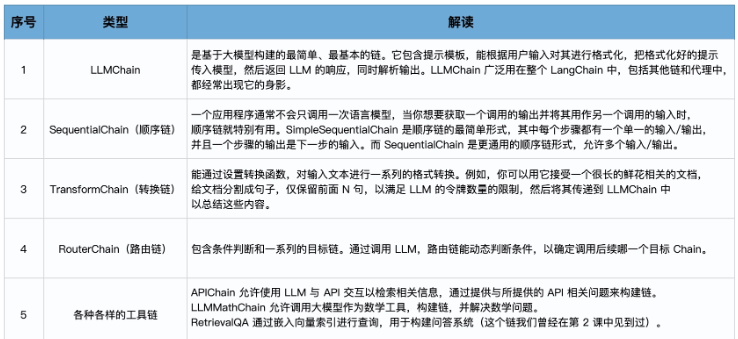 LangChain 中提供了很多种类型的预置链,目的是使各种各样的任务实现起来更加方便、规范。