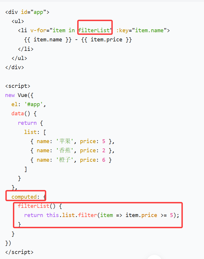 ---计算属性 ,根据已有数据计算出新数据, 必须有 return,数组 filter 写在 computed 里