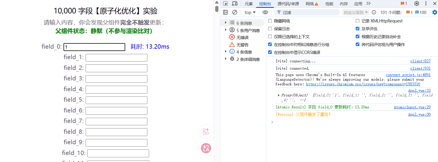 我在同一个组件内渲染1w个input标签,给每一个input v-model一个数据