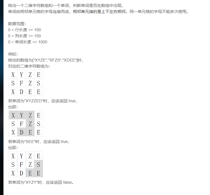 4)当我们把上面的准备工作之后,在 bfs 函数中,当遍历到 word 字符的下标 == word.size()时,返回 true 代表遍历到完整的 word 字符,那么接下来我们开始从 X 字符来遍历的他的上下左右的字符,一旦找 Y 字符,把 Y 的下标传给 bfs,这个 bfs 要设置 if 条件,那么当 bfs 返回 true 时,返回 true,遍历完上下左右的字符之后,假设没有找到符合条件的字符,就返回 false,此时 该下标的 bool 类型的二维数组要设置为 false 恢复现场;