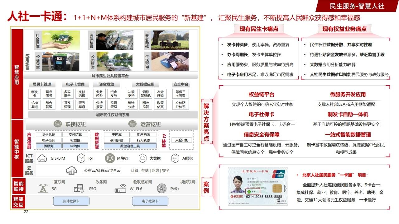 - 成效:北京民生一卡通集成社保、就业、医疗等11大领域权益服务。