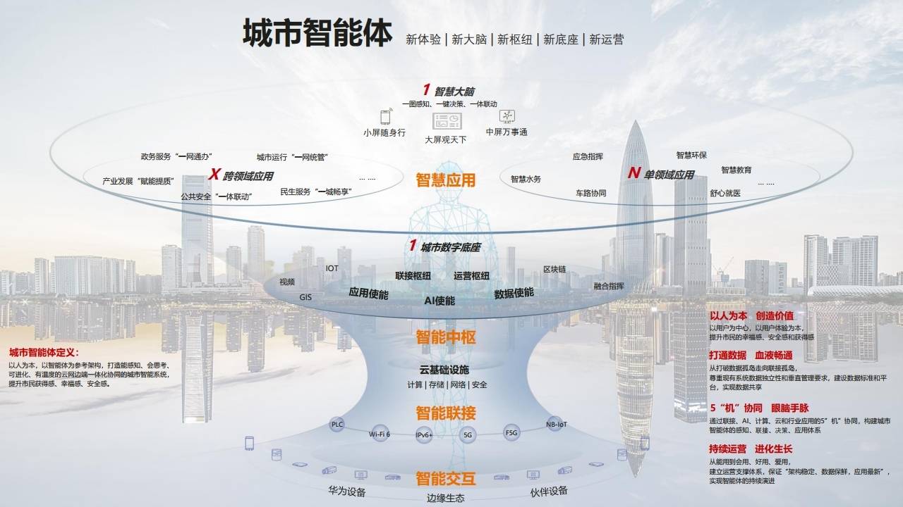 城市智能体是基于云网边端一体化协同的系统,具备感知、联接、决策、应用体系,旨在打造能感知、会思考、可进化、有温度的城市。