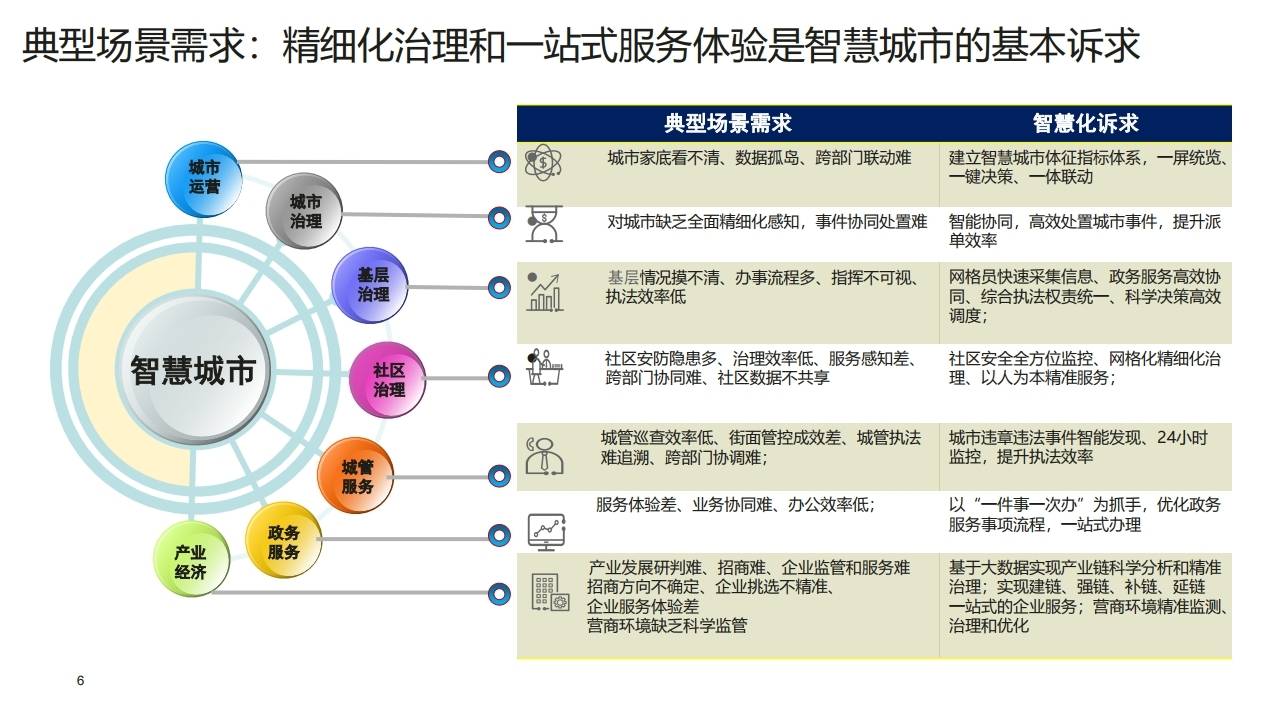 - 城市运营:解决城市家底看不清、数据孤岛、跨部门联动难问题,需建立体征指标体系,实现一屏统览、一键决策。