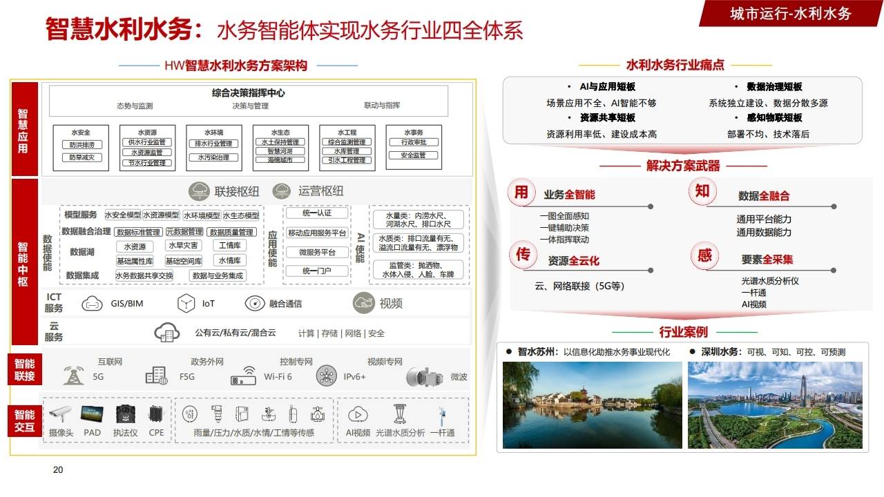 - 方案:水务智能体,实现业务全智能、数据全融合、资源全云化、要素全采集。
