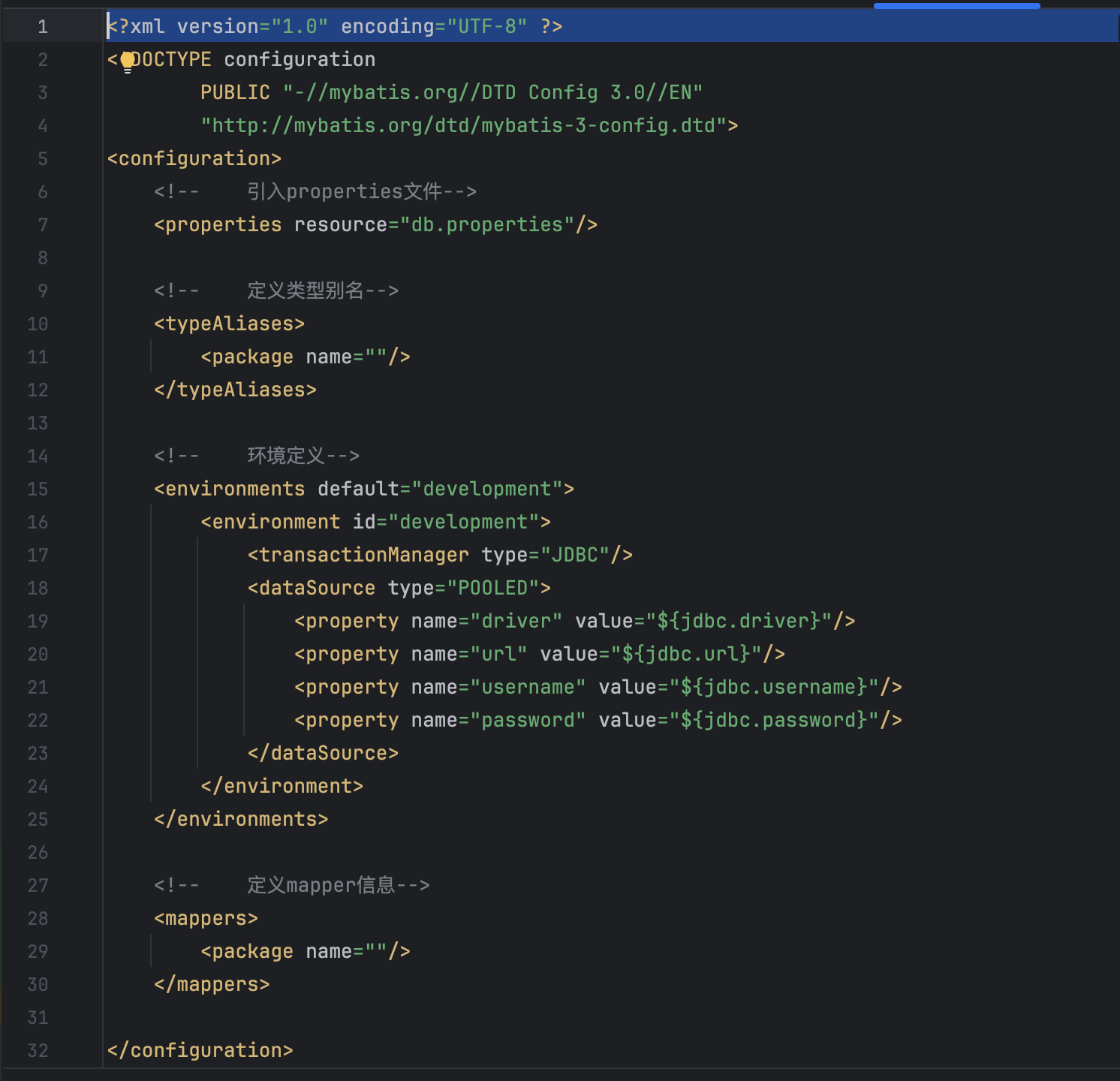 PUBLIC "-//mybatis.org//DTD Config 3.0//EN"
