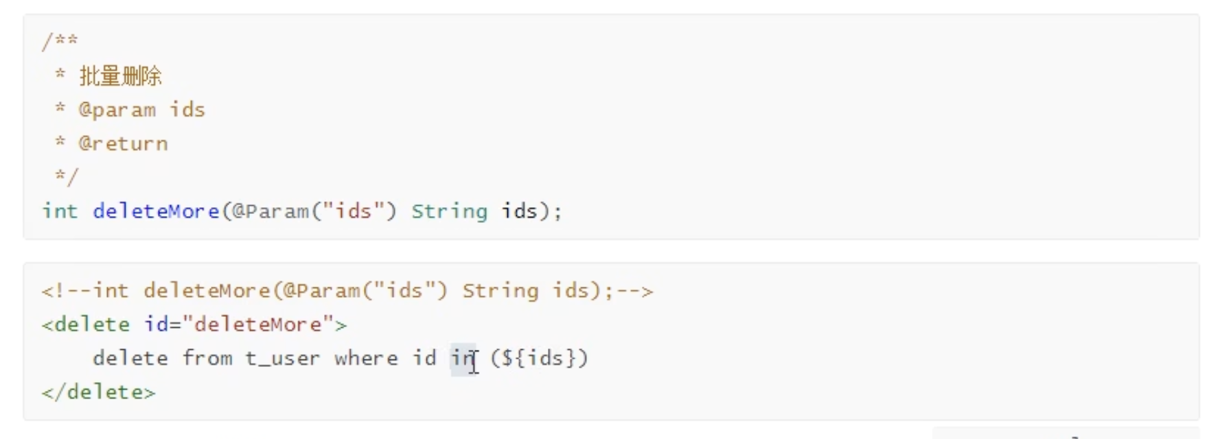 * 2、映射文件中sql语句的id要合mapper接口中的方法名一致