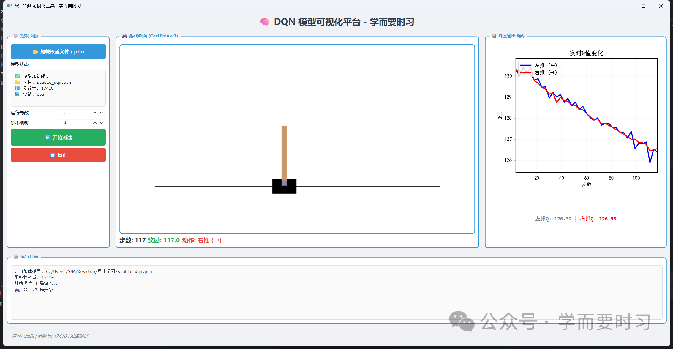 - 确定性决策 :当 Qright≫QleftQ_{right} \gg Q_{left}Qright≫Qleft 时,智能体表现出极强的平衡信心,他会知道往右推会保证平衡杆不会偏移。