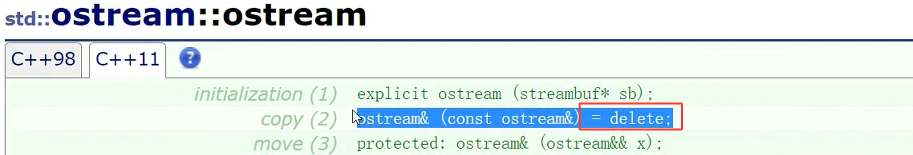 如果能想要限制某些默认函数的生成,在C++98中,是该函数设置成 private,并且只声明补丁已(应为"只声明不定义"),这样只要其他人想要调用就会报错。在C++11中更简单,只需在该函数声明加上 =delete 即可,该语法指示编译器不生成对应函数的默认版本,称 =delete 修饰的函数为删除函数。