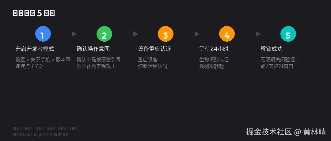 而且整个流程设计得很"高阶"------必须开启开发者模式、必须主动确认、必须生物识别。这摆明了告诉 Google:这套流程是给懂行的用户准备的,你觉得自己行就来。