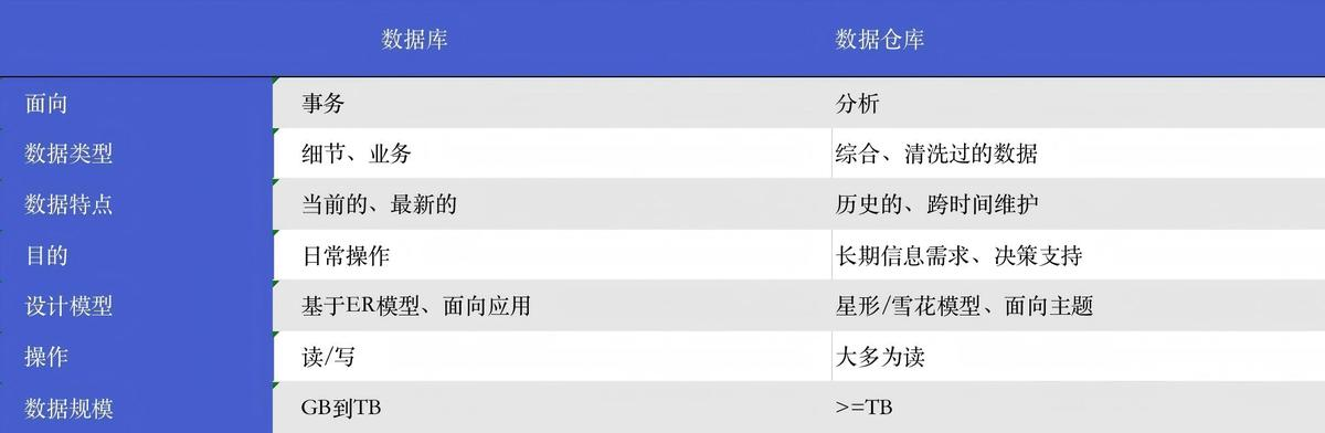 数据库主要承载日常业务系统的高并发实时操作,比如订单下单、支付扣款、库存更新。它的设计追求的是事务处理的高效、精准和稳定,核心在于"增删改查"的即时性。你可以把它想象成高速运转的生产线。