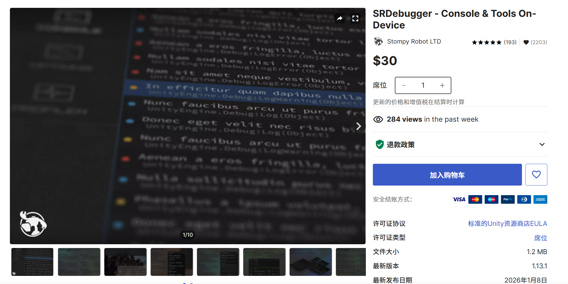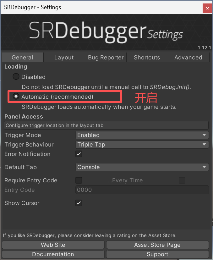 3.打开菜单"Window/SRDebugger/Settings Window",进行设置