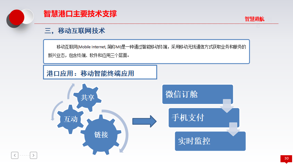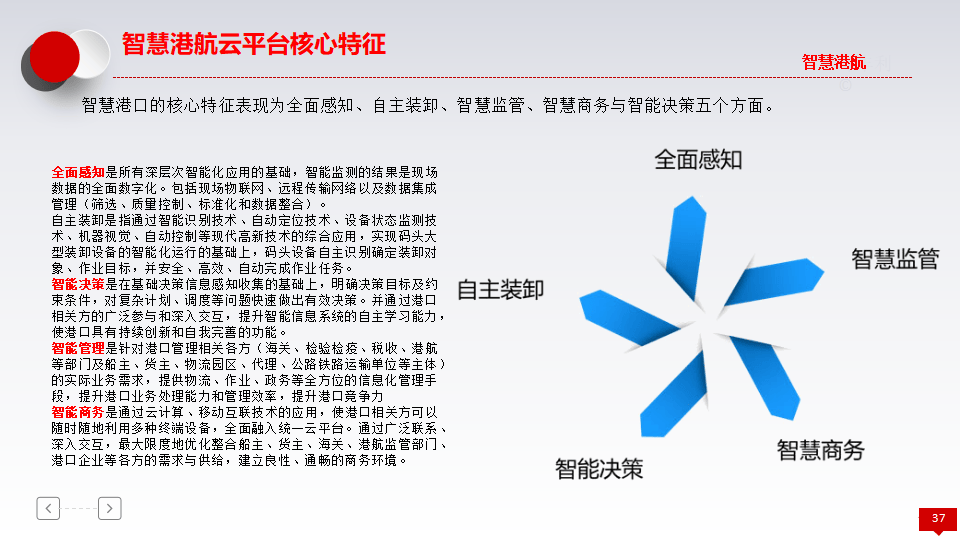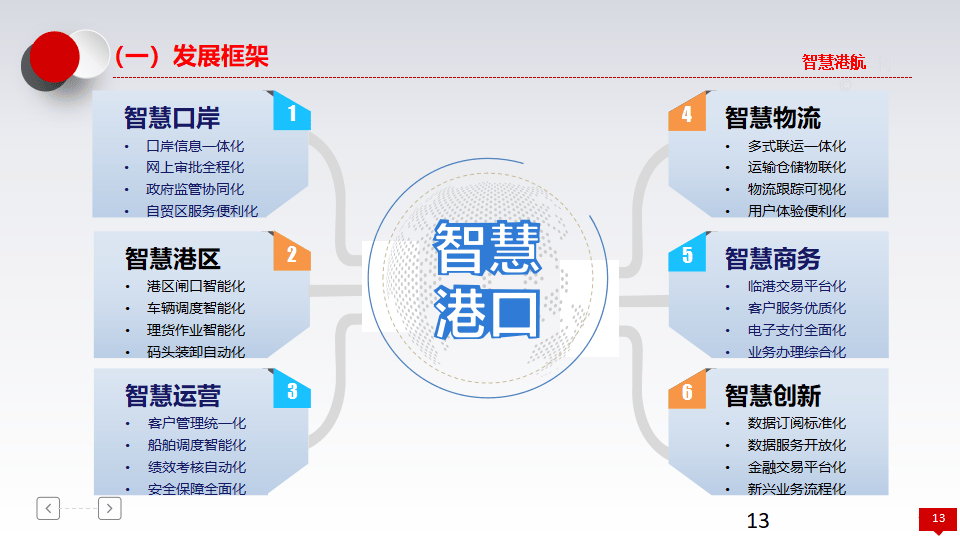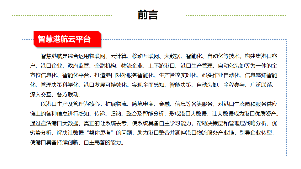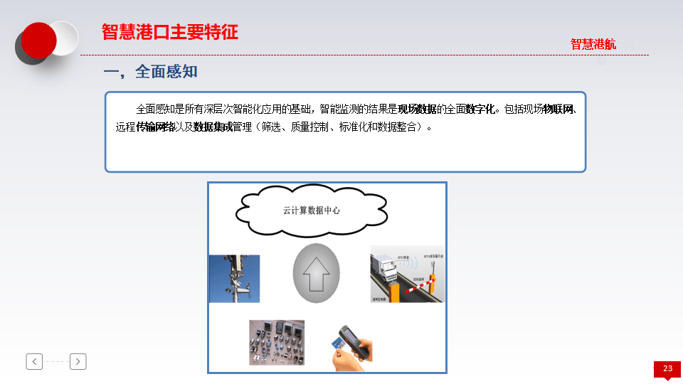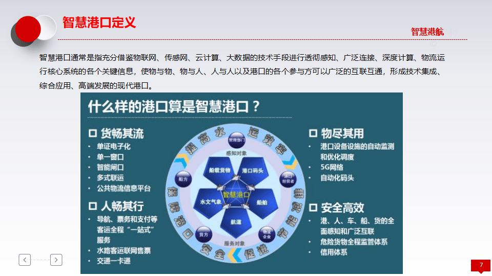 - 演进阶段:从传统港(人海战术、手工操作)到信息化港(业务流程自动化),再到智能化港(先进技术高度运用),最终迈向智慧港(全面感知、广泛连接、深度计算)。