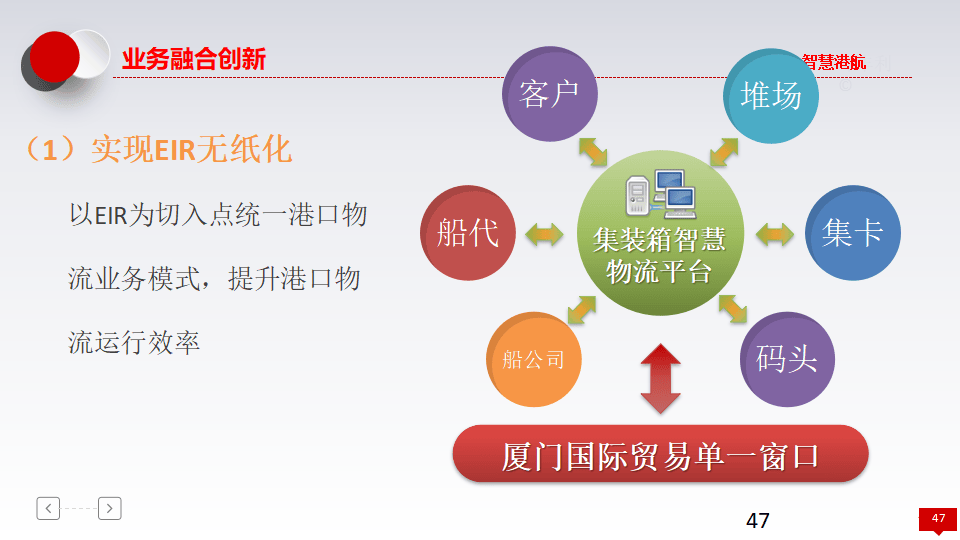 - EIR无纸化:以EIR为切入点统一港口物流业务模式,提升物流运行效率。