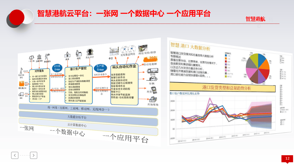 智慧港航云平台采用"一张网、一个数据中心、一个应用平台"的架构,旨在通过大数据分析平台实现全方位管控一体化。