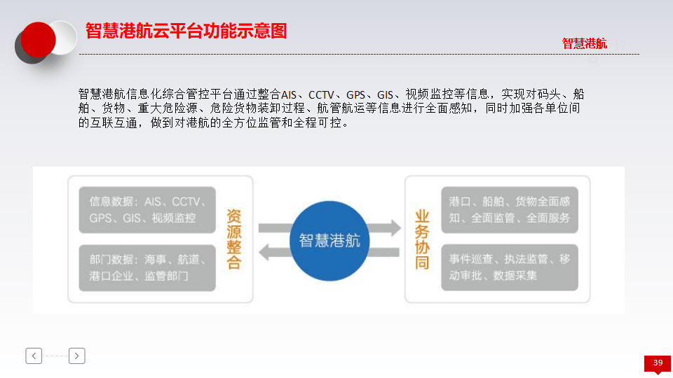 - 建设目的:实现港域内所有事物的"可见、可查、可控、可管、可预见",提升物流效率,减少船只滞港时间,实现精细化管理与全方位监管。
