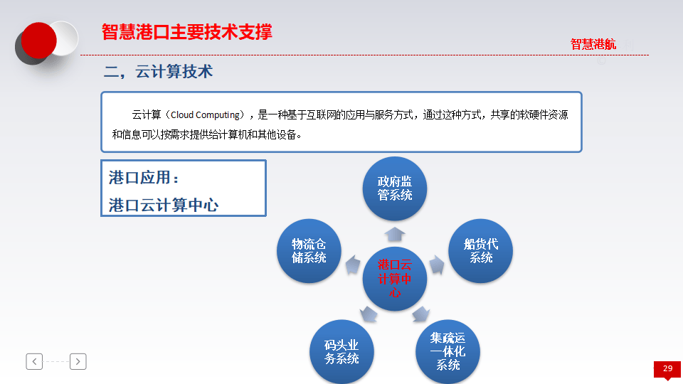 - 核心定义:借鉴物联网、传感网、云计算等技术,实现港、人、车、船、货的全面感知和广泛互联。