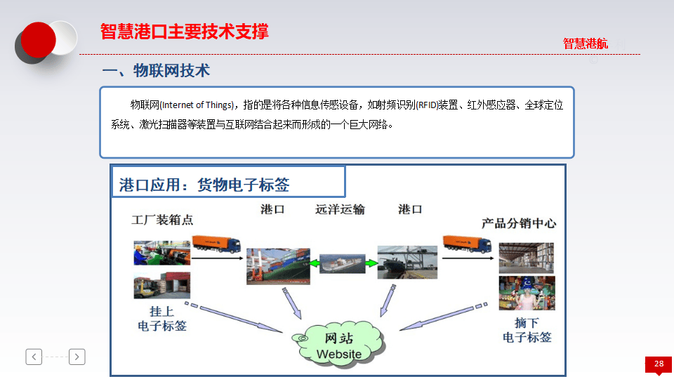 - 物联网技术:用于货物电子标签、港口产品分销中心等。