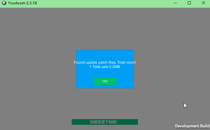 此时重新运行游戏测试,会有一个热更新弹窗,点击Yes下载游玩即可。