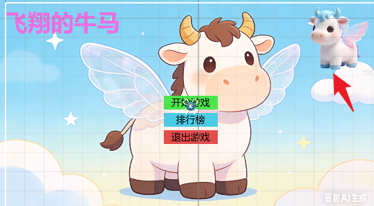 在主页面中右上角添加一个小牛马,在战斗场景游戏结束时添加一个背景图片 。