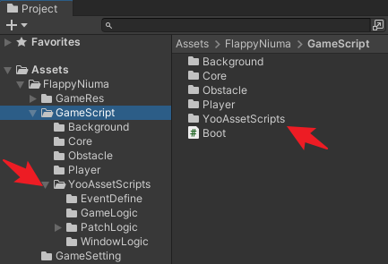 可以先给YooAsset相关脚本添加一个文件夹,跟初始游戏脚本分开方便管理,后面流程捋顺了再按正常文件夹归类。