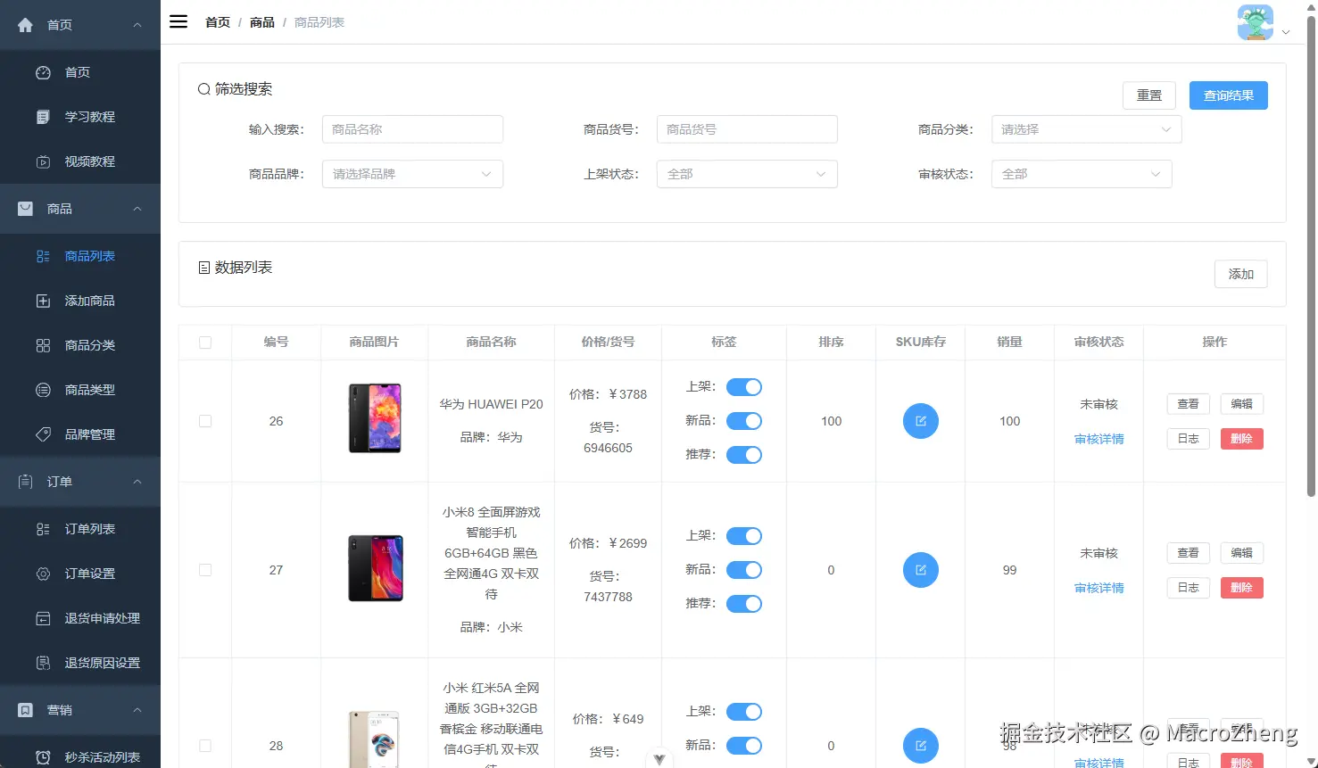 下面是mall-admin-web项目运行的效果图,界面还是很清新优雅的!如果你想体验完整功能的话,可以访问这个在线演示地址:www.macrozheng.com/admin/