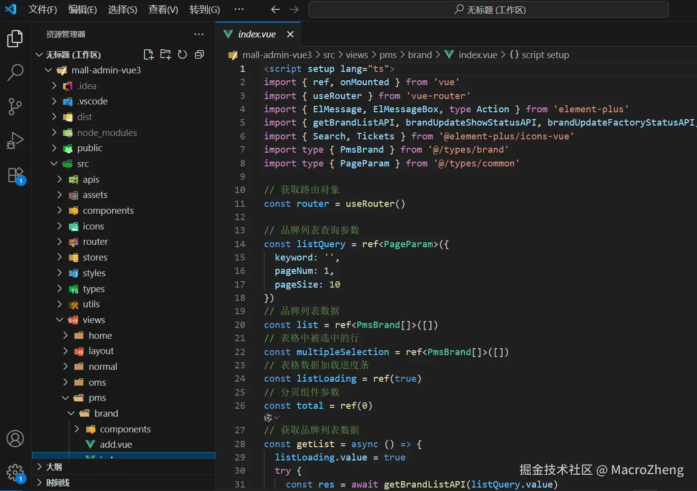 关注过我的mall项目的小伙伴应该有所了解,mall项目的后台管理系统一直都是Vue2版本的,主要原因是项目从Vue2升级到Vue3基本等于要重写了。 最近我花了一个月的时间,将mall项目的后台管理系统升级到了Vue3版本,今天和大家聊聊做了哪些升级!