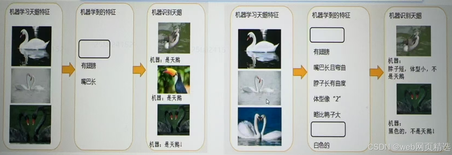 ・机器学习到的天鹅特征太少了,导致区分标准太粗糙,不能准确识别出天鹅