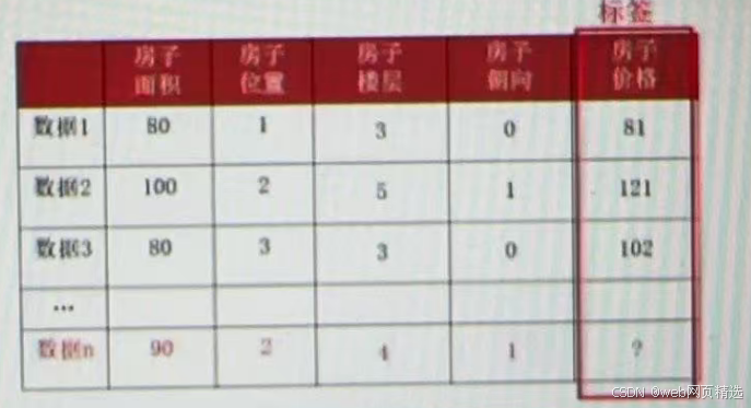 特征(feature):一列数据一个特征,有时也被称为属性