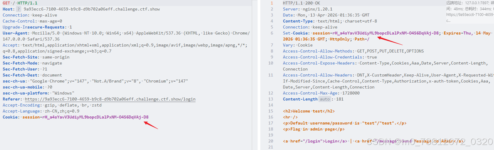 查看下一个响应包,发现了我们之前登陆没有发现的信息session: