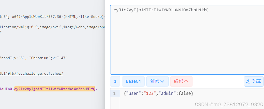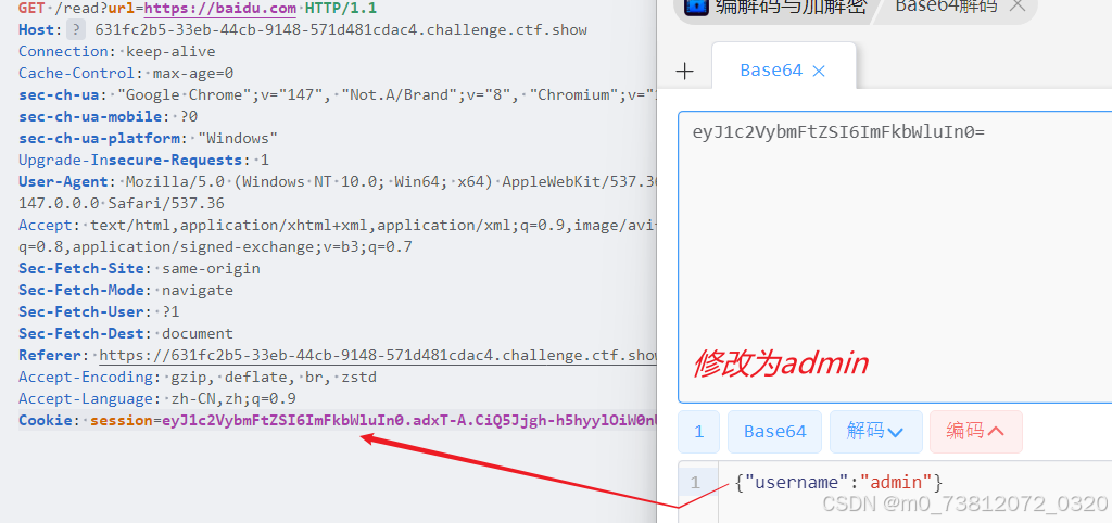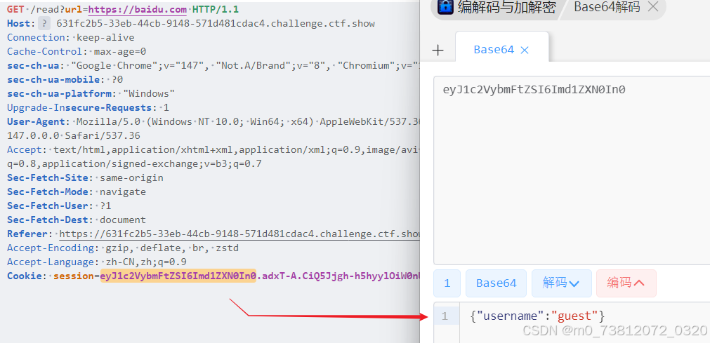 这里对第一部分解码,我们可以知道当前是guest用户:(而代码要求需要get('username') == 'admin')