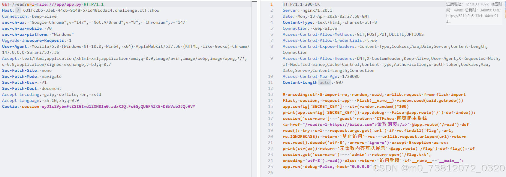(3)这里知道是python的后台,源码在app.py里面,尝试读取源码: