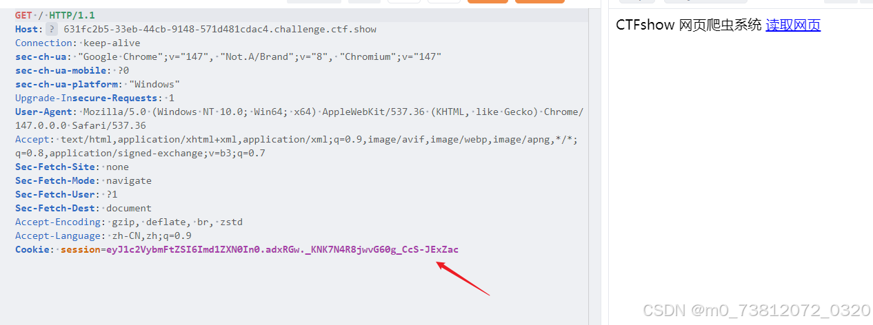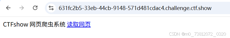 return 'CTFshow 网页爬虫系统 <a href="/read?url=https://baidu.com">读取网页</a>'