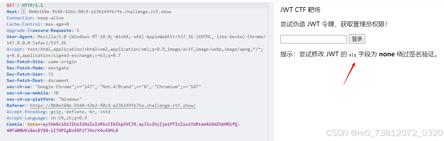开发人员为了方便调试,将算法设置为None ;也就是Signature为空,可以越权查看: