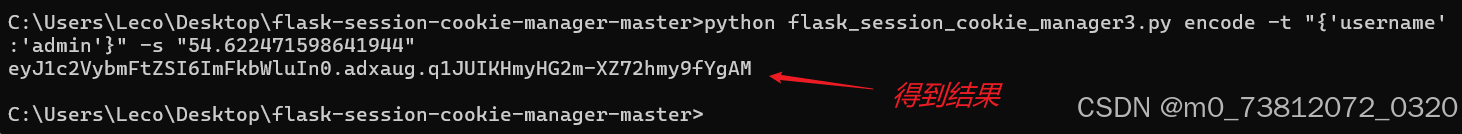 C:\Users\Leco\Desktop\flask-session-cookie-manager-master>python flask_session_cookie_manager3.py encode -t "{'username':'admin'}" -s "54.622471598641944"