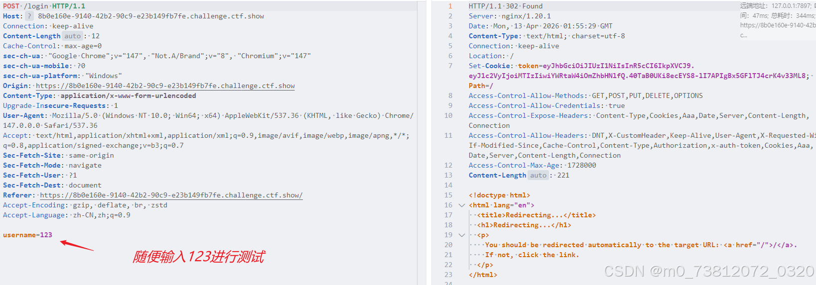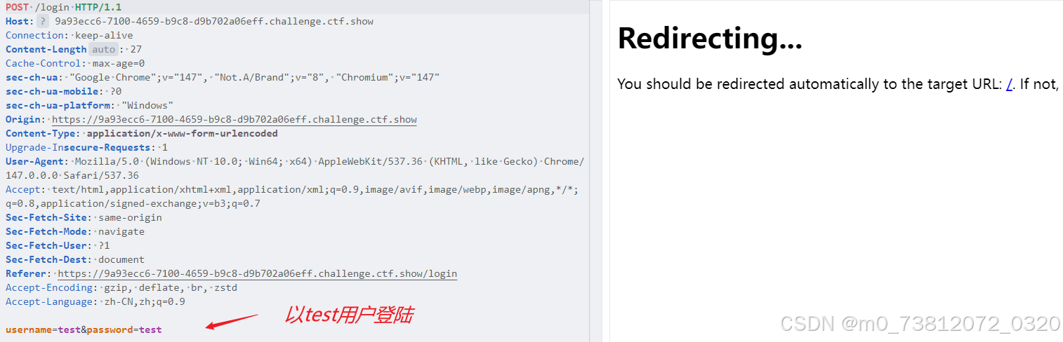 - 发现输入账号密码后,会直接重定向到当前页面,并没有另开一个页面page;