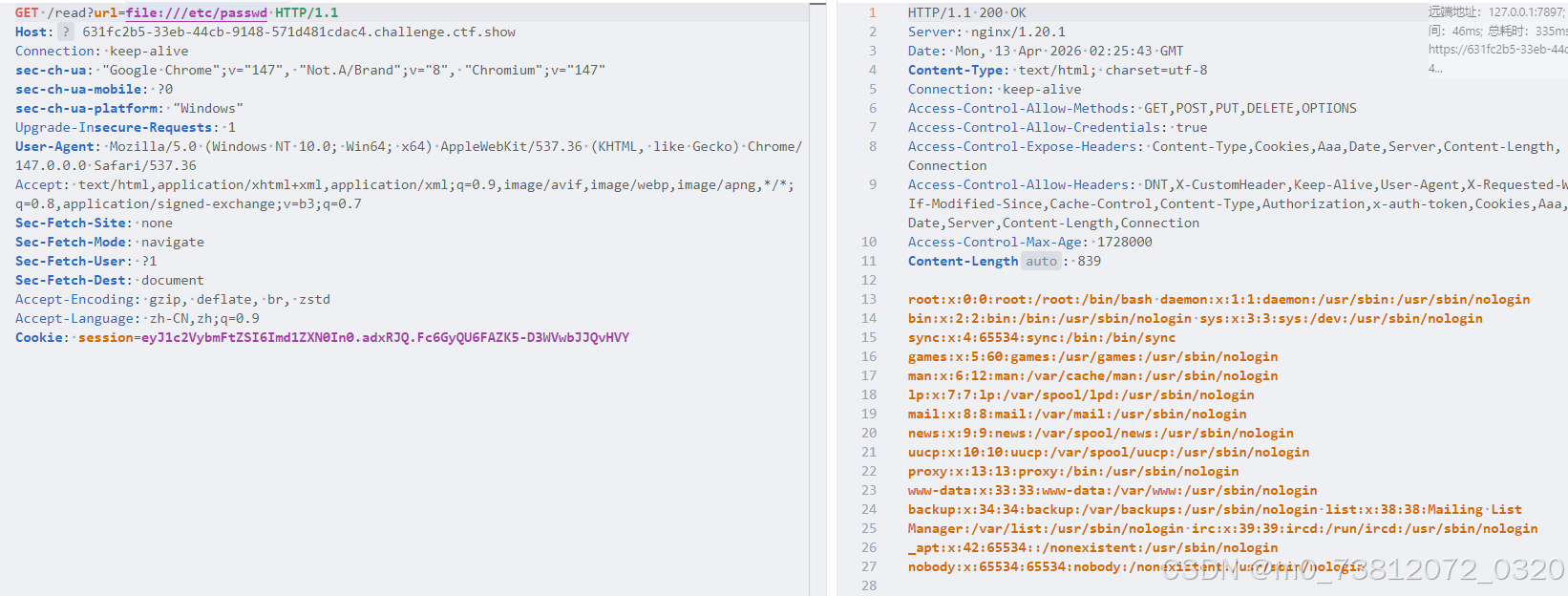 (1)既然通过url参数返回了百度的页面 猜测存在任意文件读取: