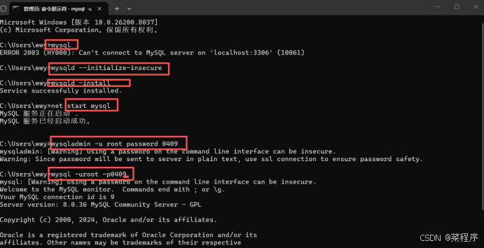 3.启动mysql服务:net start mysql