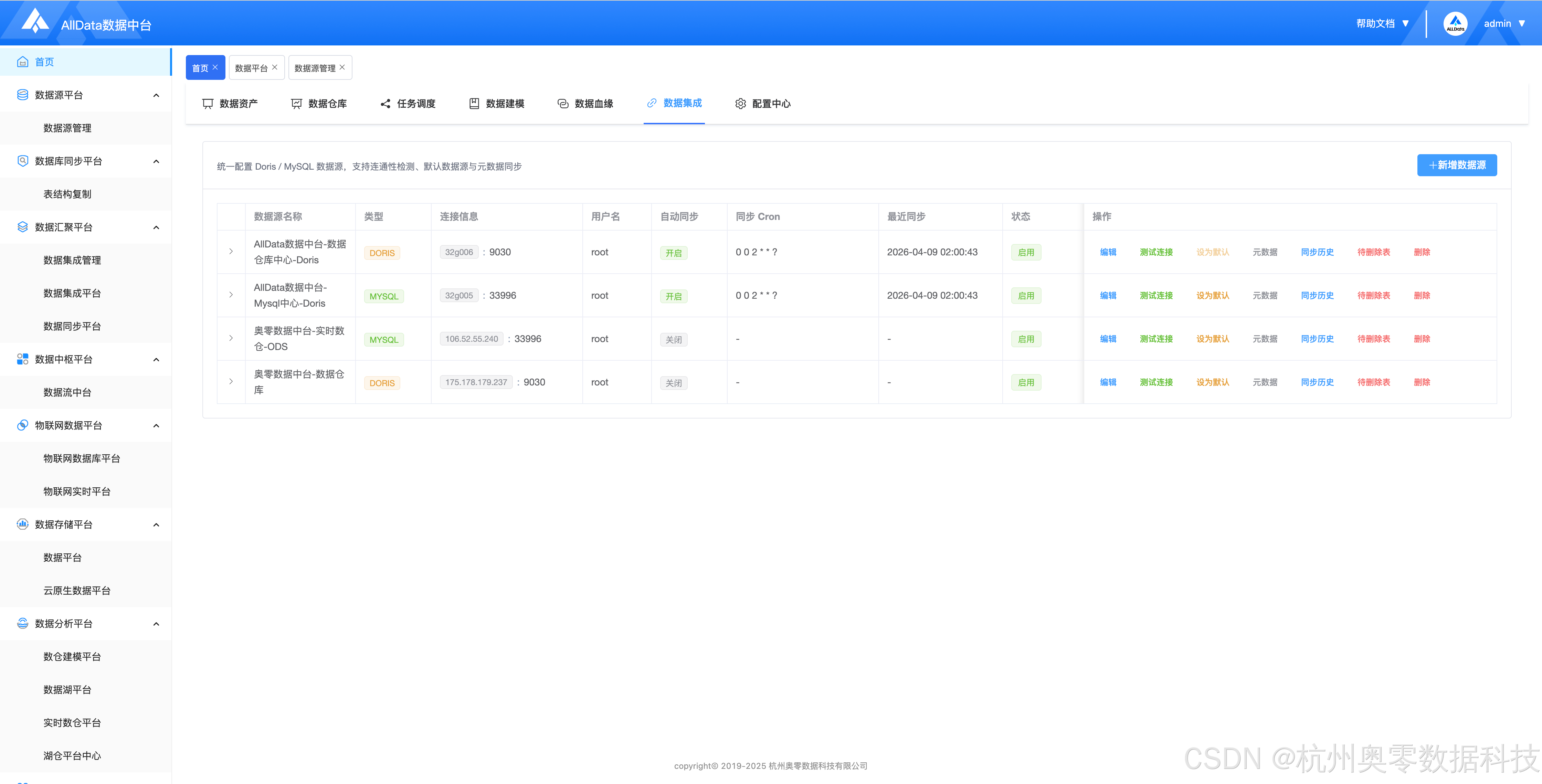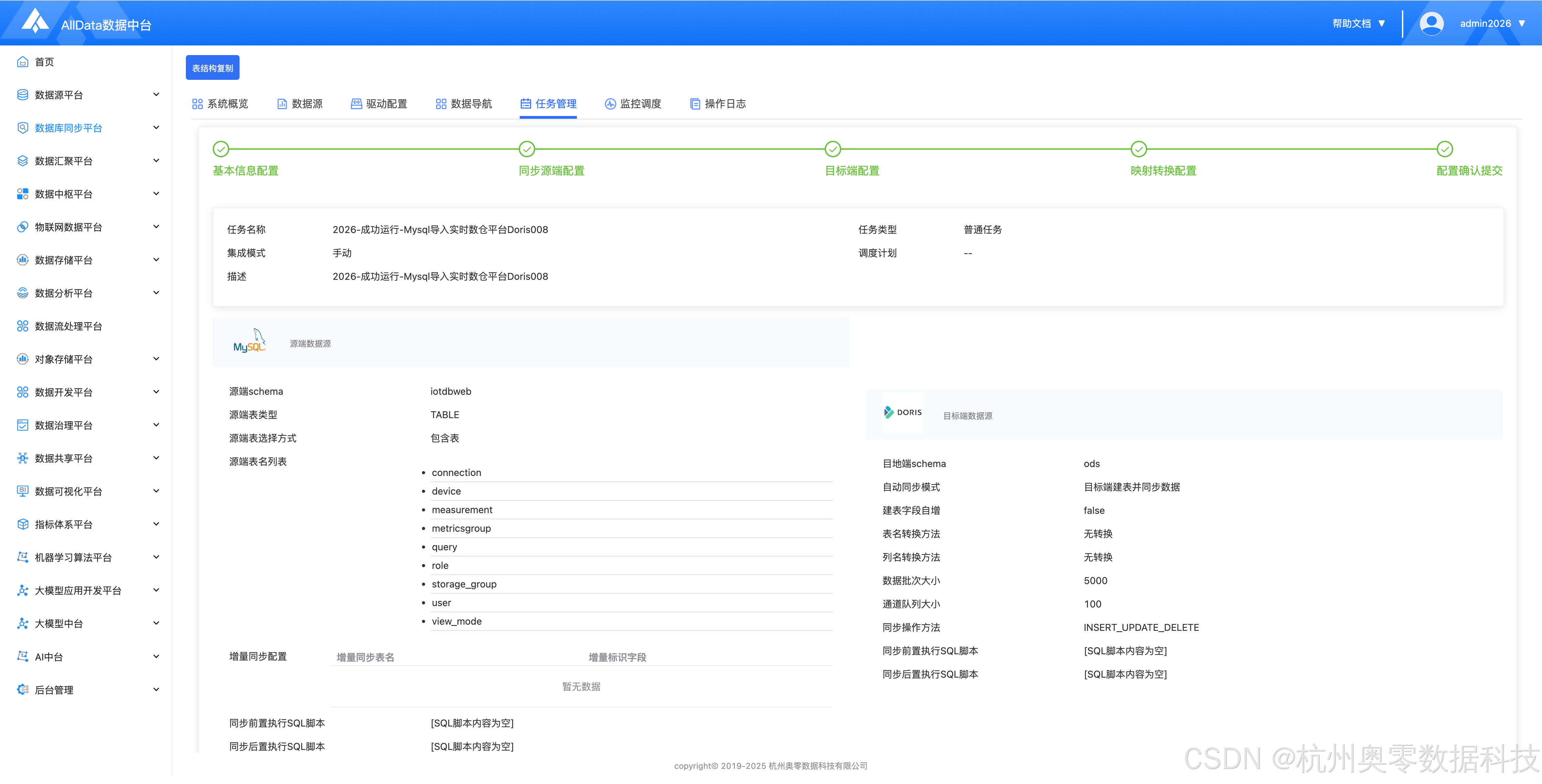 (9)通过AllData数据库同步中台,同步Mysql数据到Doris(自动创建表和插入数据)