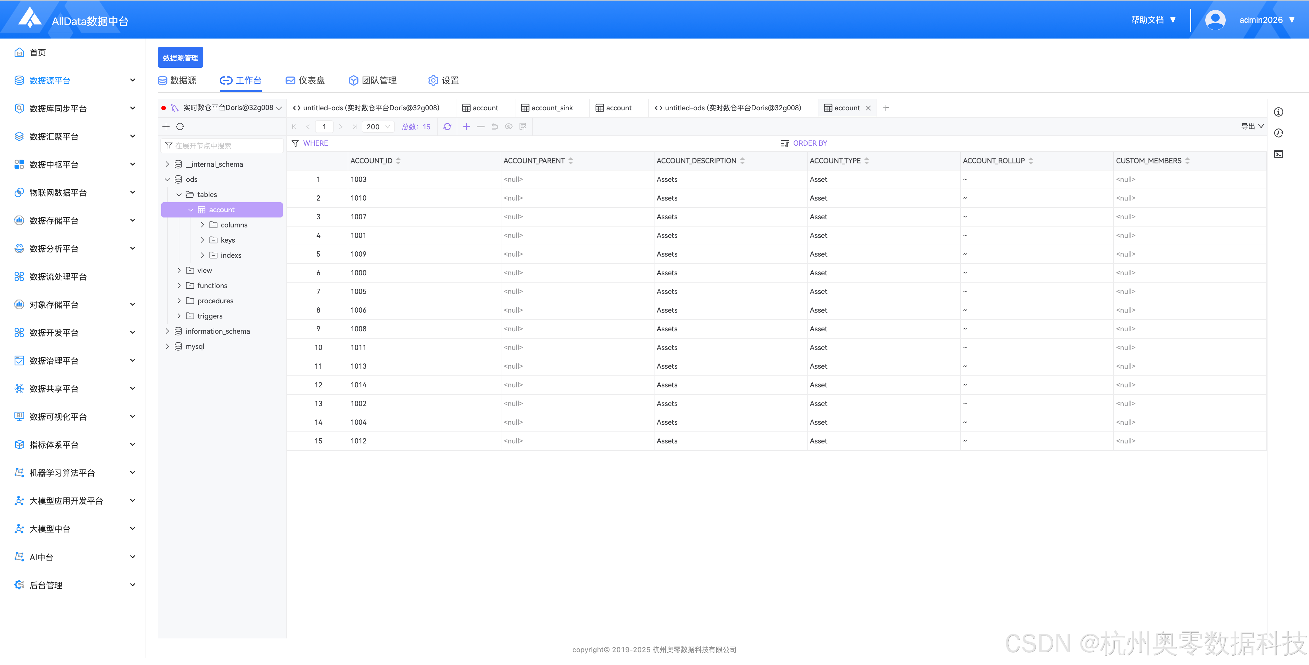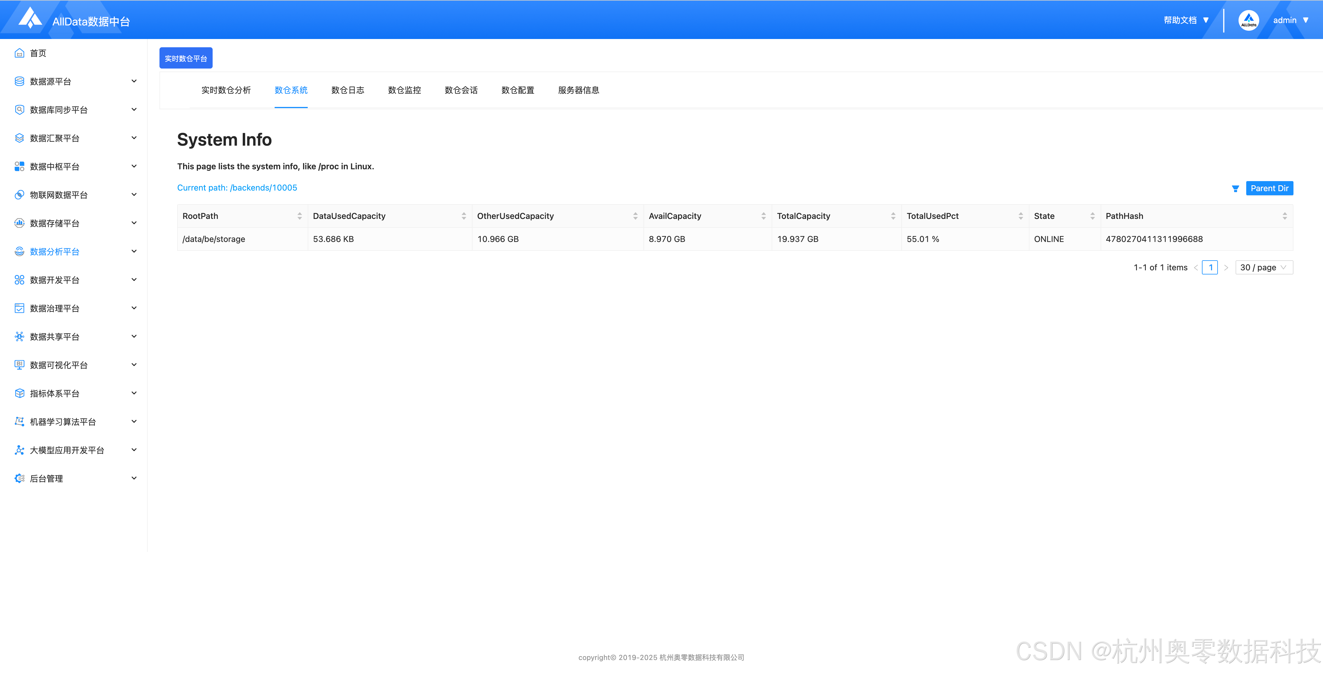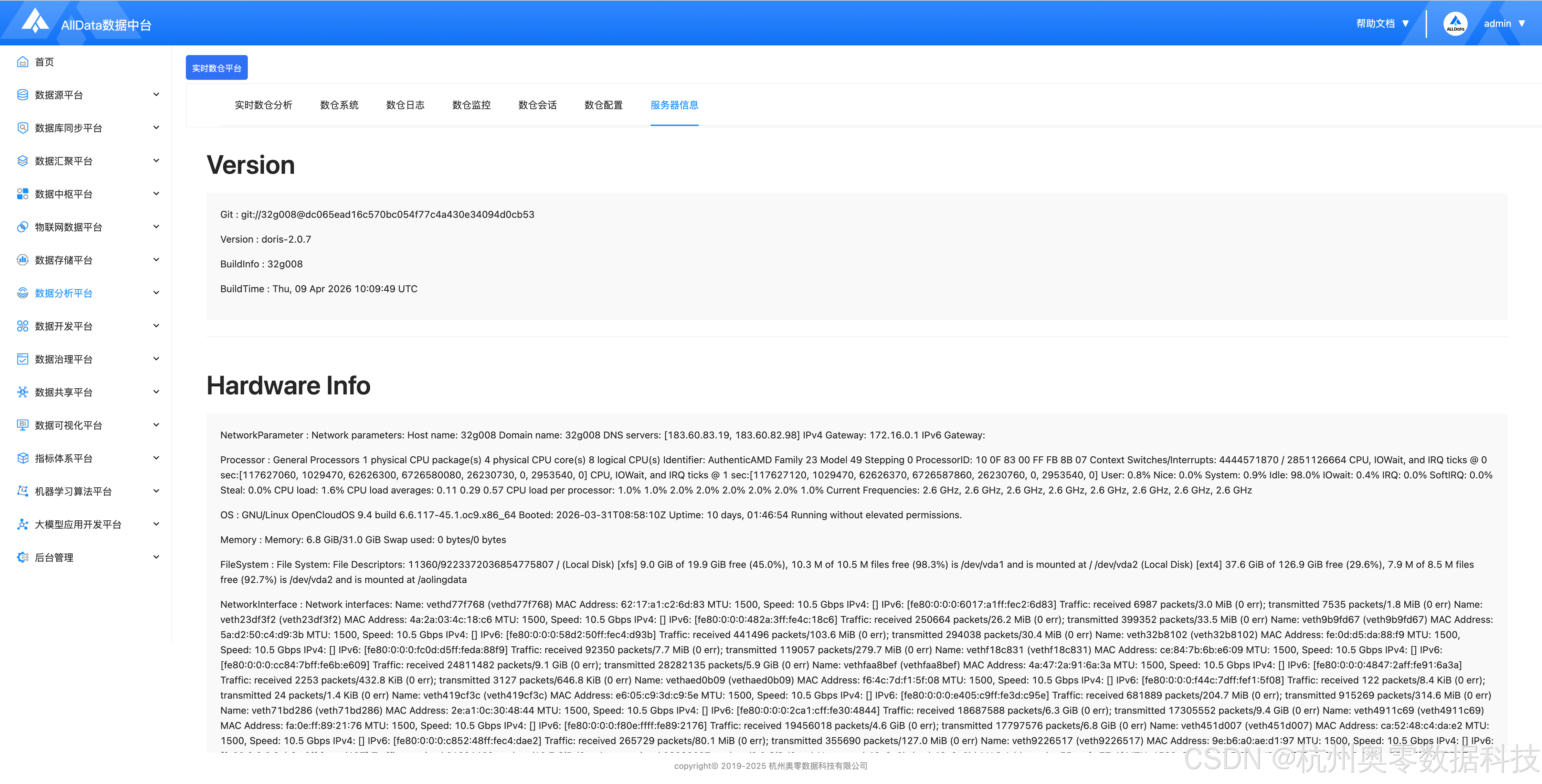 (8)通过AllData数据资产平台,查看实时数仓平台Doris数据资产统计
