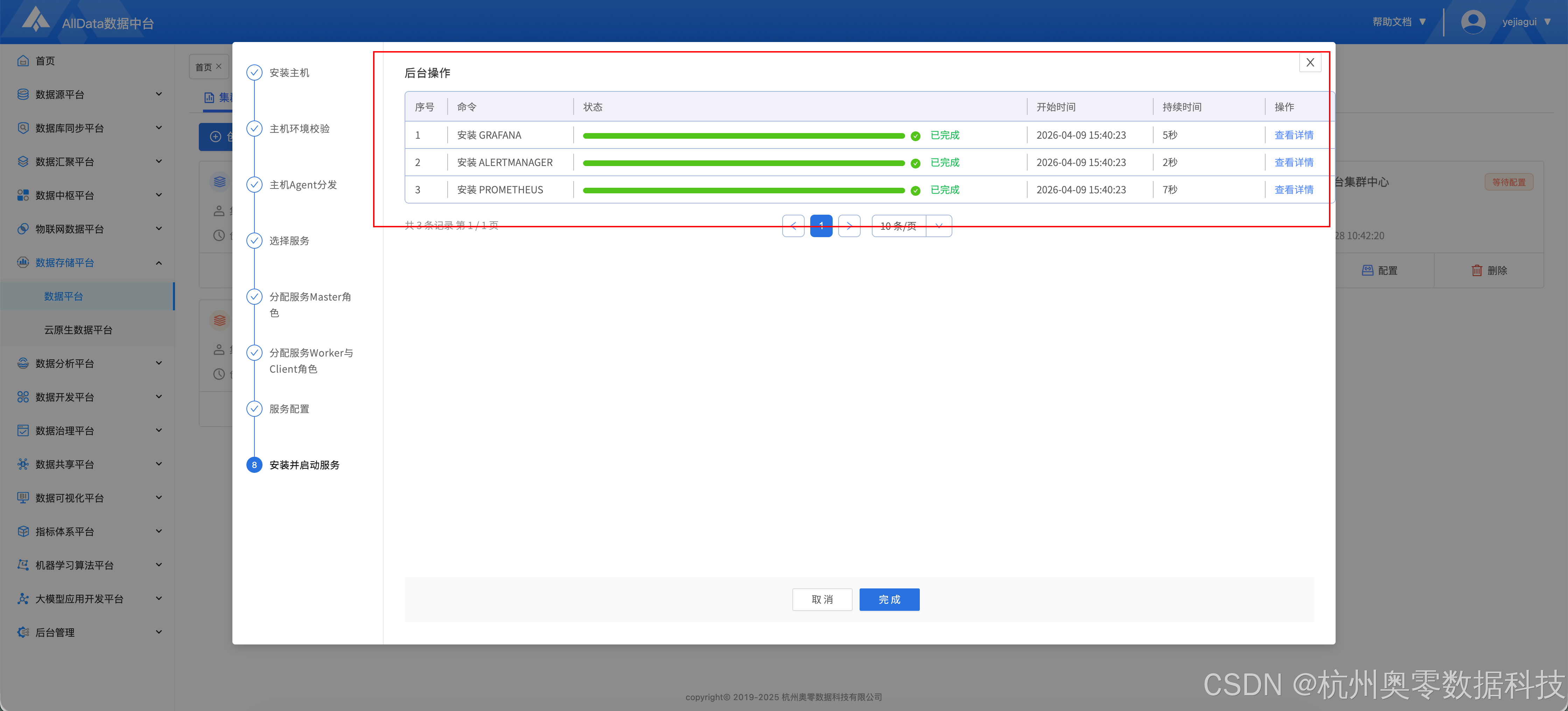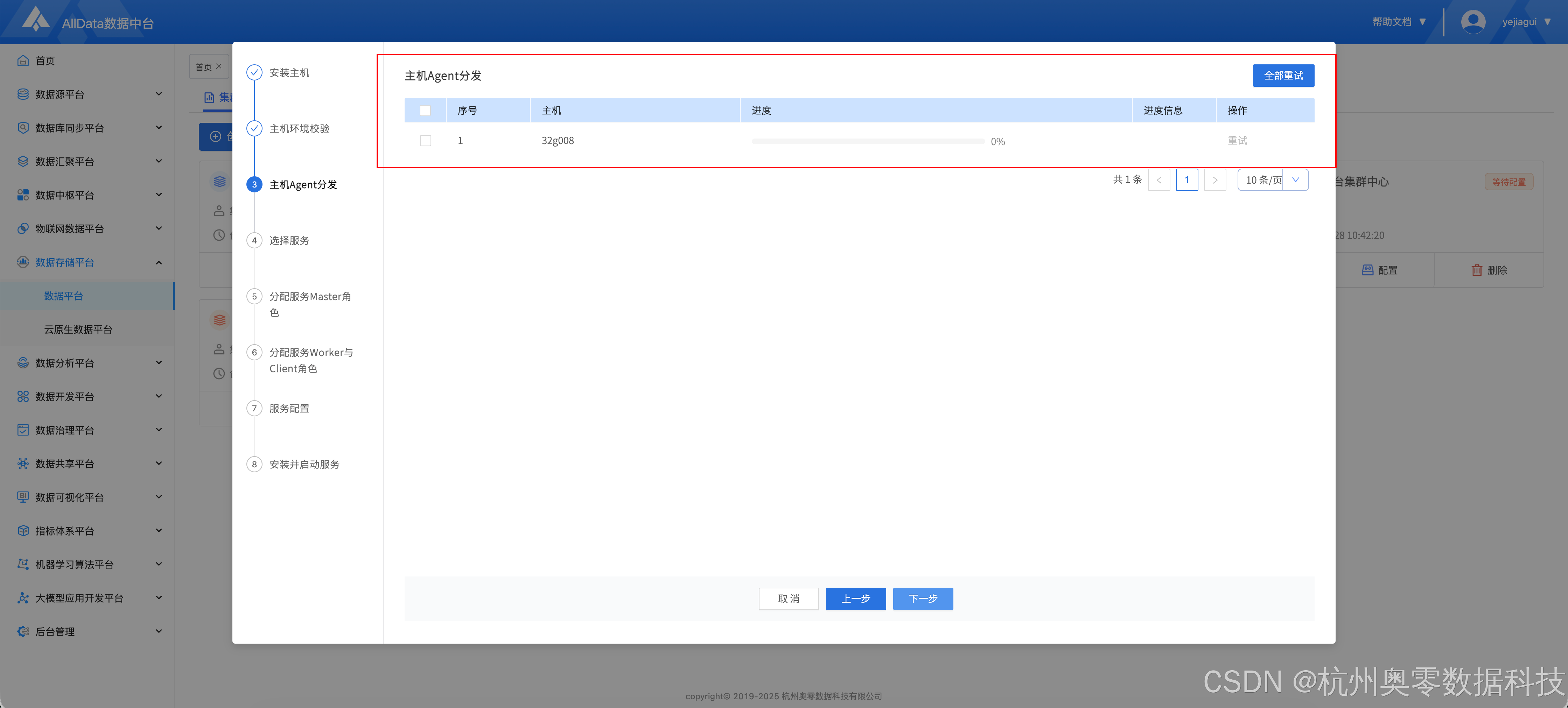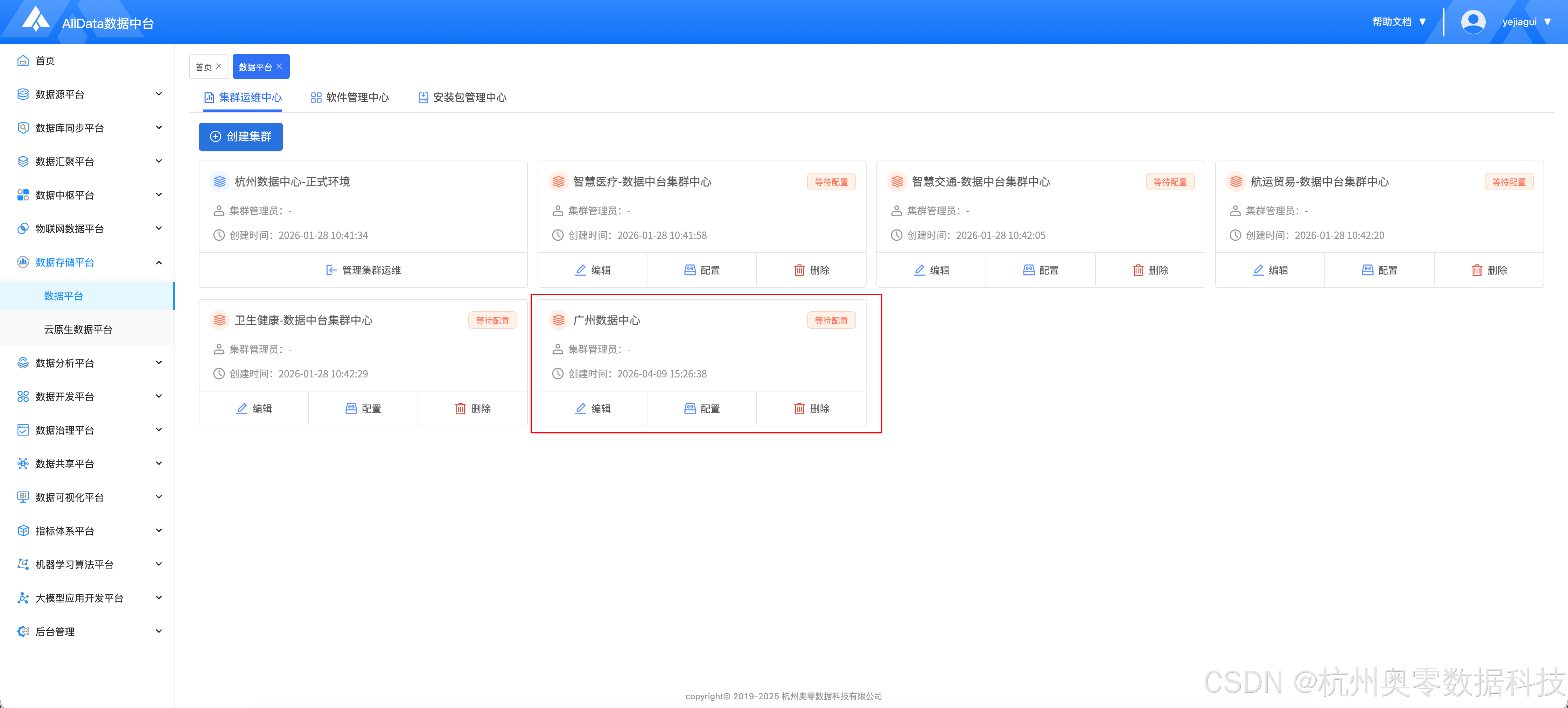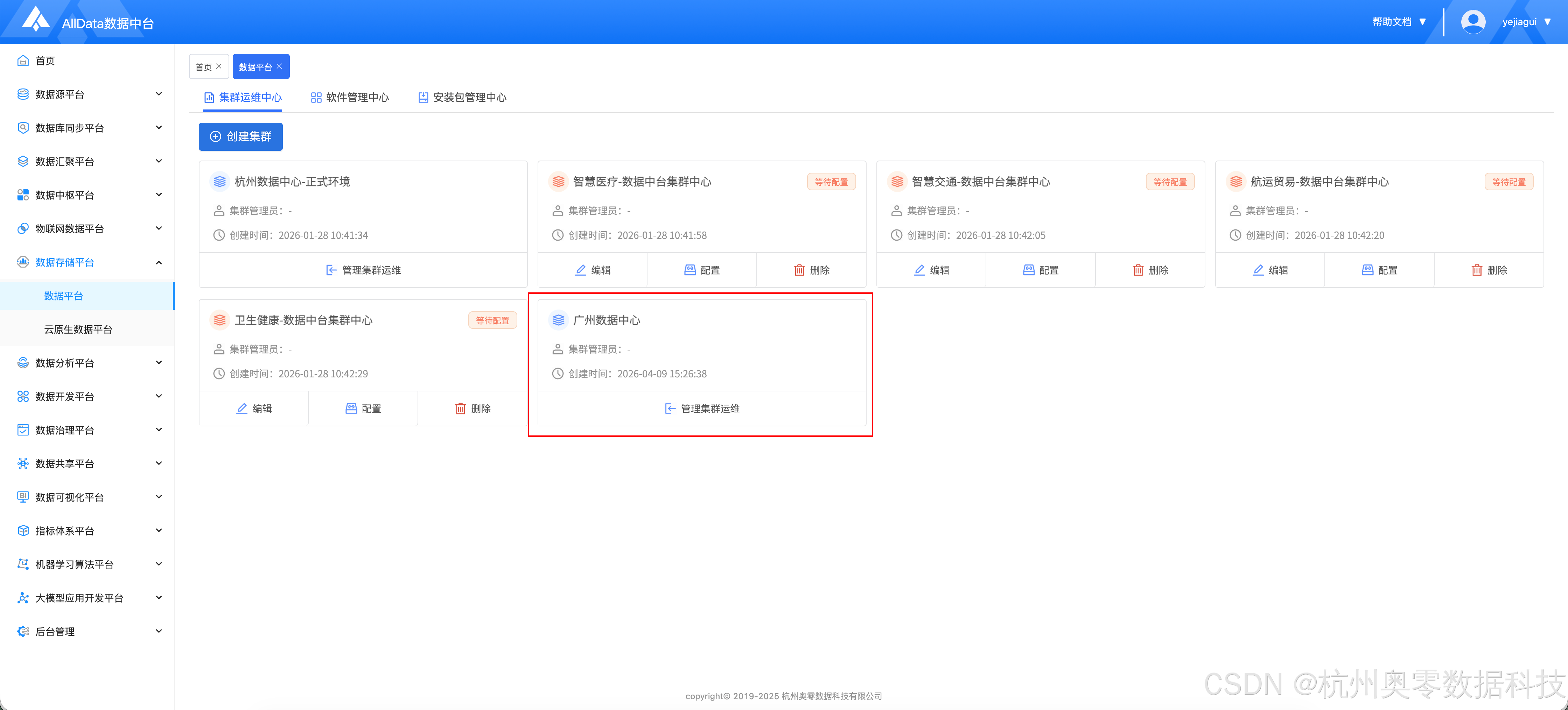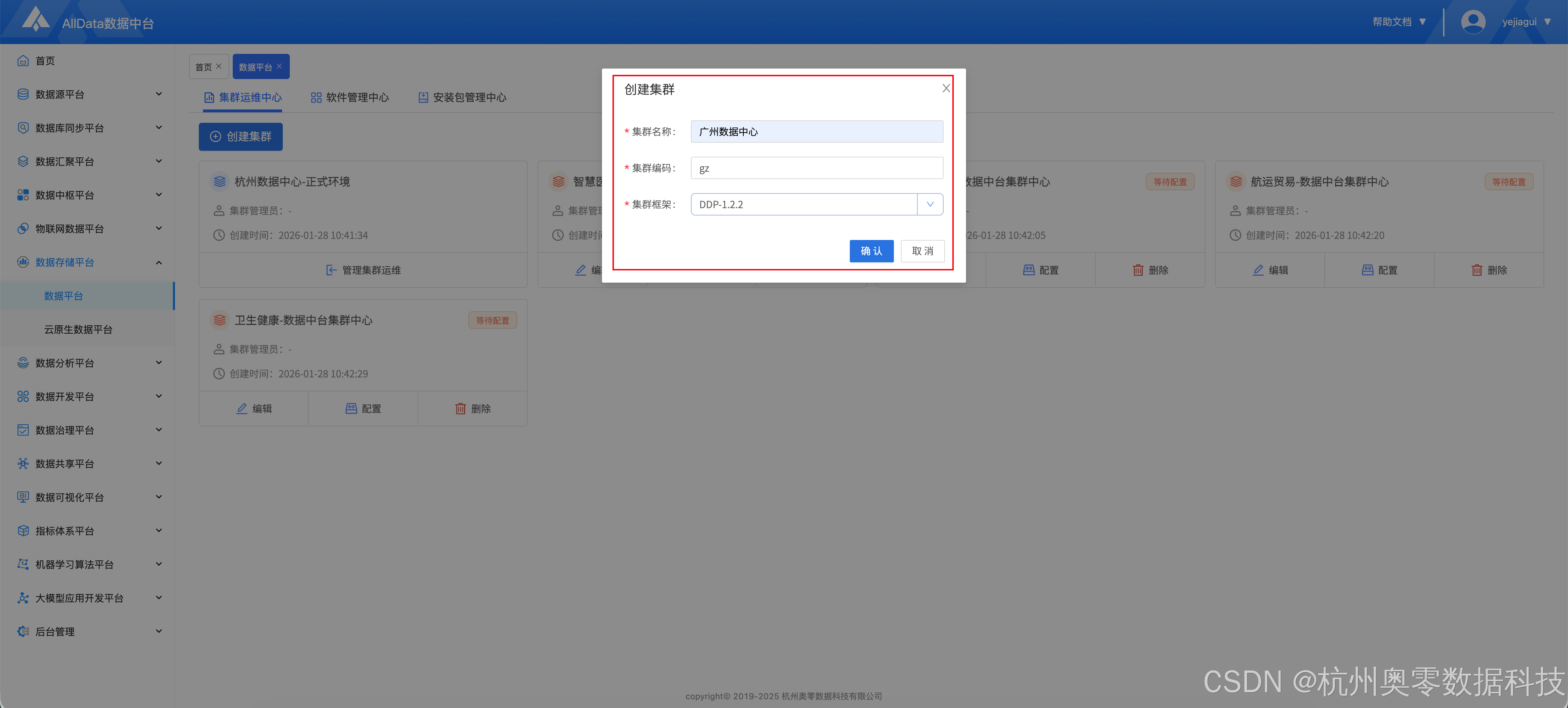 功能菜单一:通过AllData数据平台的能力,创建大数据集群