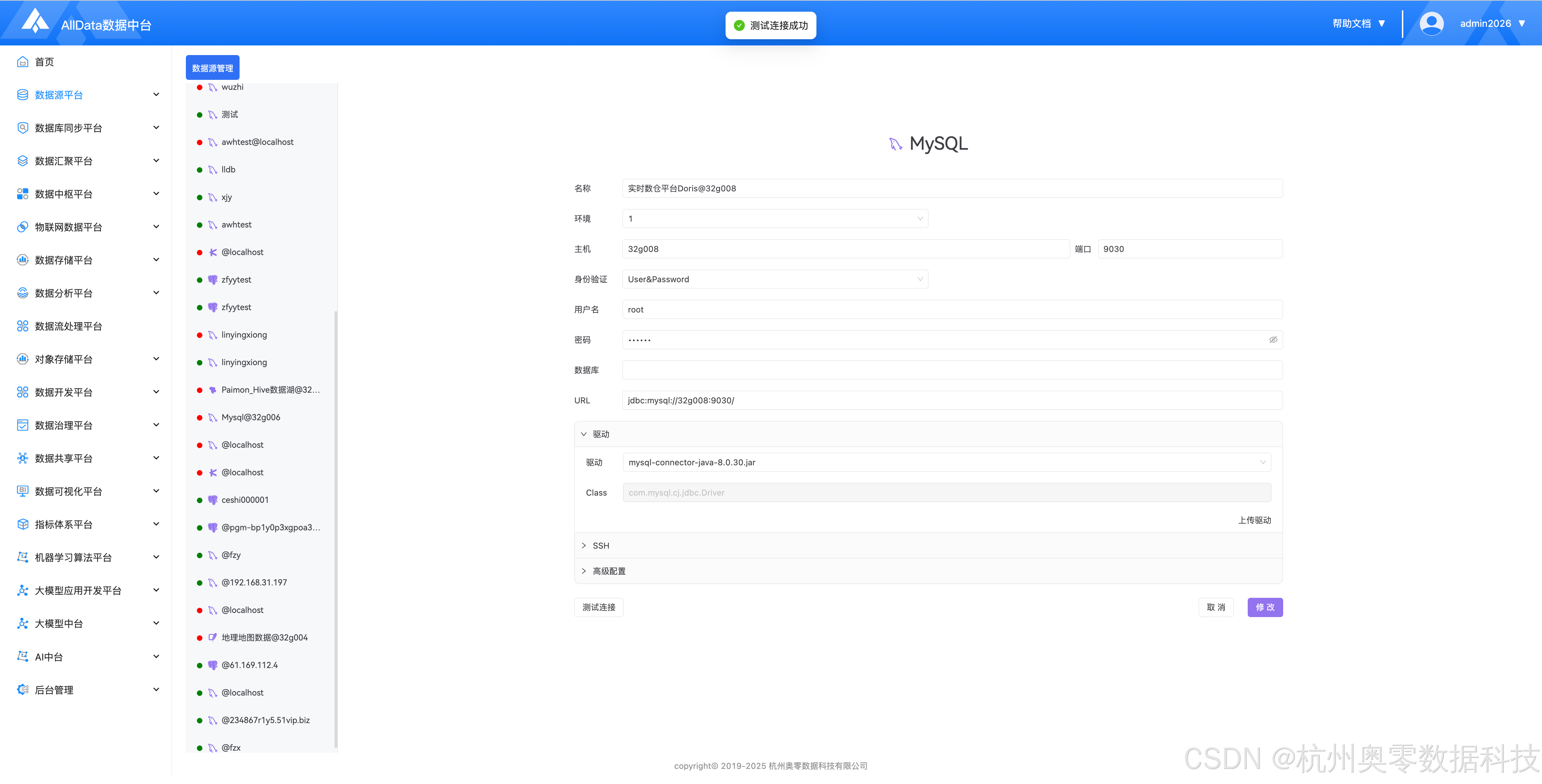 (6)通过AllData数据源平台,管理与连接新的大数据Doris集群