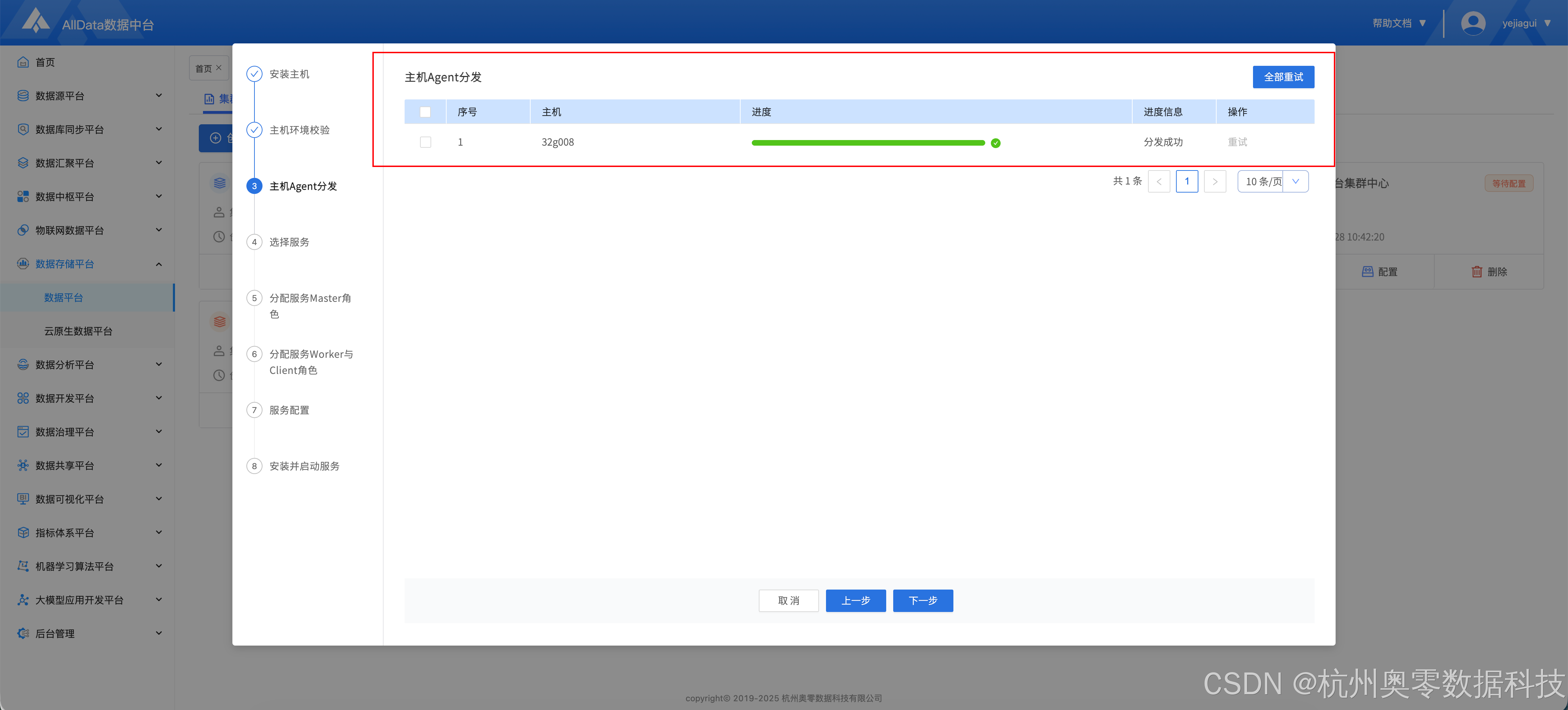 成功安装主机,并完成主机Agent分发
