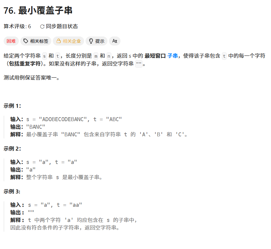1.该题"讲人话"就是在一个字符串s中找到一个最短的能够涵盖子串所有字符的子串